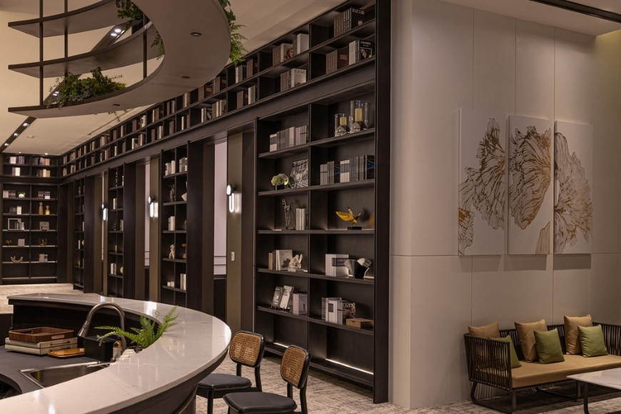 接待中心以高端飯店級規格呈現該案設計語彙,展現「長耀會」居住質感。