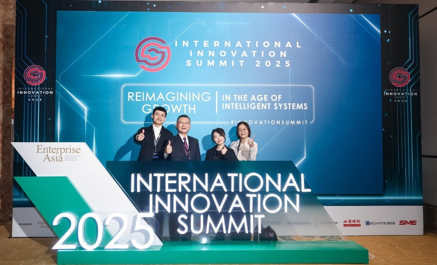 諭泰生技董事長王克舜(左2)、研究員潘妍如(左4)、助理研究員郭政原(左1)及秘書闕仕玟(左3)代表公司參加亞洲企業商會(Enterprise Asia)主辦之2025國際創新峰會(International Innovation Summit 2025)。