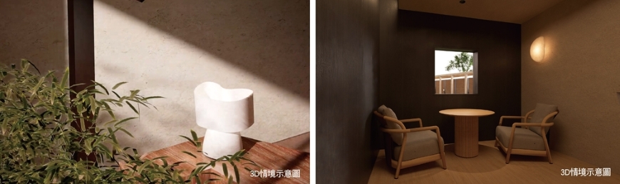 「迴東騰」公設空間從迎賓廳、開放式沙發空間、兩間隱蔽的閱讀包廂,到藏身庭園在水瀑樹影扶疏間的冥想密所,依次從公、私、隱、密四個不同層次遞進,體現日本文學界唯美派大師谷崎潤一郎,在《陰翳禮贊》說的「美,不存在於物體之中,而存在於物與物產生的陰翳的波紋和明暗之中。」