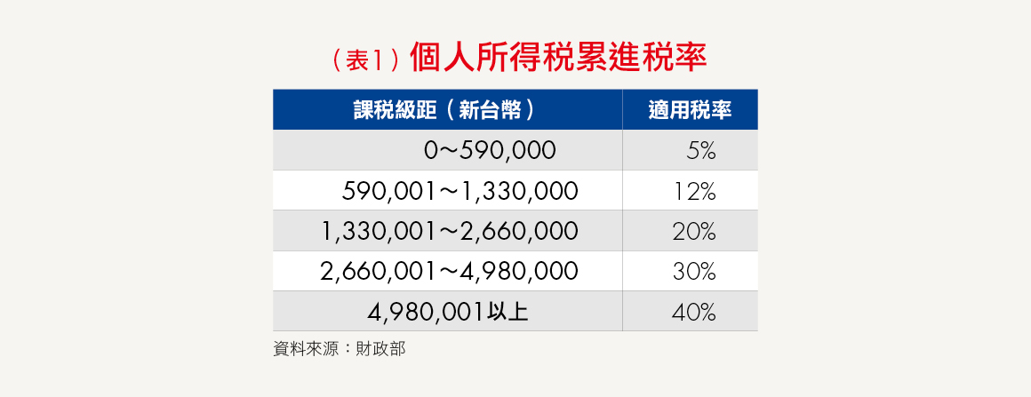 當個人收入超過新台幣498萬元,最高稅率將達40%,這對高收入族群而言,稅負相當沉重。