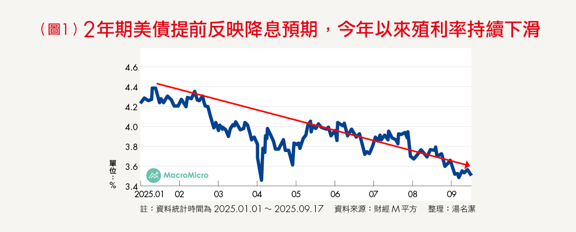 以2年期美國公債為例,其殖利率自年初(1月13日)的高點4.39%,一路下探至9月17日的3.51%,正是市場提前反映降息的結果(詳見圖1),未來隨著Fed持續釋出寬鬆訊號,短債依然具備資金避風港的功能。
