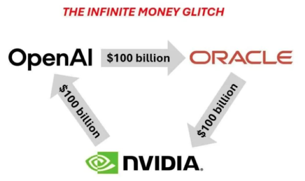 9月初甲骨文宣布與OpenAI簽訂5年價值3,000億美元的算力協議,從2027年開始執行,而後輝達(Nvidia)在9月底宣布注資OpenAI高達1,000億美元,引發外界戲稱「ONO聯盟」相互投資的閉環系統為「AI永動機」,未來資料庫大廠甲骨文扮演雲端運算樞紐、輝達提供AI晶片給資料中心,至於OpenAI則負責管理資料中心和出租算力。