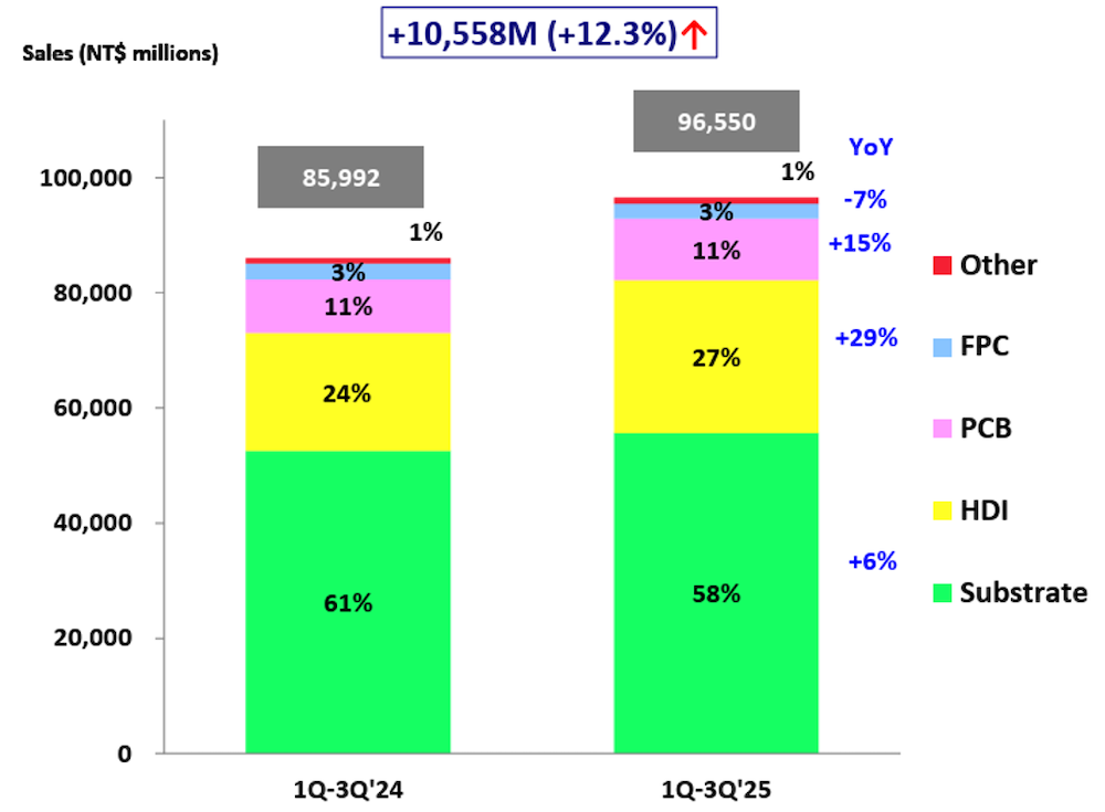 至於在下游應用方面,欣興2025年前3季營收有59%來自電腦,21%來自通訊網路,13%來自消費性電子,剩下7%來自車用。