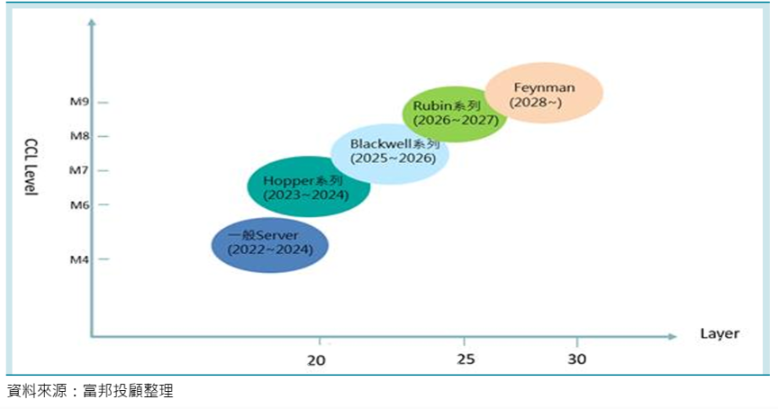真正讓產業「變天」的,是AI伺服器的全面崛起,傳統消費性電子多為8層板,通用伺服器過去約12層~24層,但AI伺服器PCB已躍升至22層~26層,甚至未來超過50層。