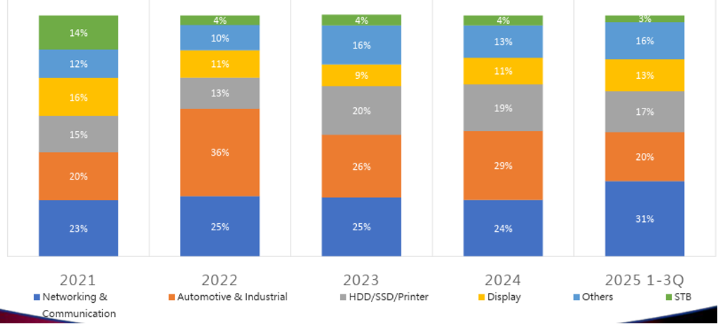 在DRAM IC設計的下游應用方面,鈺創去年前三季營收有31%來自網路通訊,20%來自車用及工控,17%來自硬碟、固態硬碟及印表機,13%來自顯示器,3%來自機上盒。
