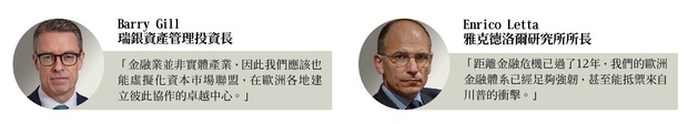 而且,在當代科技的支持下,「儲蓄與投資聯盟」或許不需要一個實體的「金融首都」,而是可以透過虛擬的統一監管體系來運作。Barry Gill認為,由歐洲多國合資、集結各地優勢而成的航空器供應大廠Airbus(空中巴士),即是值得參考的範例。「金融業並非實體產業,因此我們應該也能虛擬化資本市場聯盟,在歐洲各地建立彼此協作的卓越中心。」他建議。