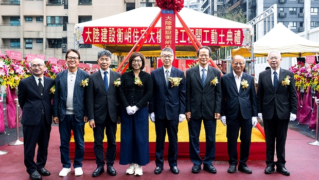 大陸建設執行長廖淳森(右4)率「衡岄」建築團隊三大聯合建築師事務所、大陸工程、永峻工程與傳真行銷舉辦動土大典。