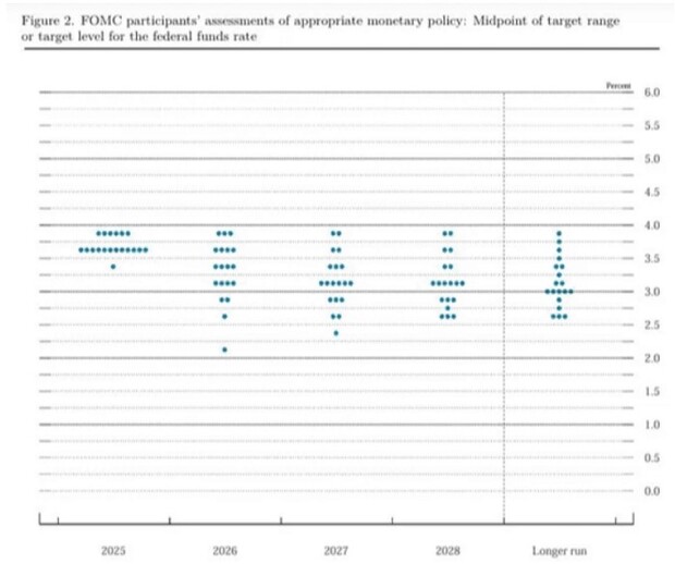 而從總經的預測來看,其實本次Fed其實同步上修了,2025、2026、2027年年的GDP成長率,尤其2027年GDP成長率更是大幅度的調高,PCE年增率也幾乎同步下調。這代表的是Fed給出的經濟看法是軟著陸(甚至可以說是不著陸)且通膨降溫,這也給了金融市場非常正向的景氣訊號。看起來Fed的政策方向將會以適時偏鴿不過度寬鬆的方式,穩定整個金融市場的波動。