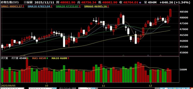 不僅如此,儘管Fed主席鮑威爾在會議後的記者會上提到「不再預設每次會議都會降息」,但他也認為通膨是由關稅引起,且通膨的上漲為一次性,並預期明年第1季過後通膨將逐漸回穩,故「完全沒有考慮升息」。對此,市場也多半以鴿派解讀本次的利率決策會議,這點其實也可以從剛剛的CME FedWatch Tool工具中看到,明年3月前再降息1碼、或是利率持平的機率都正在上升,故道瓊指數也在FOMC會議後再創歷史新高。