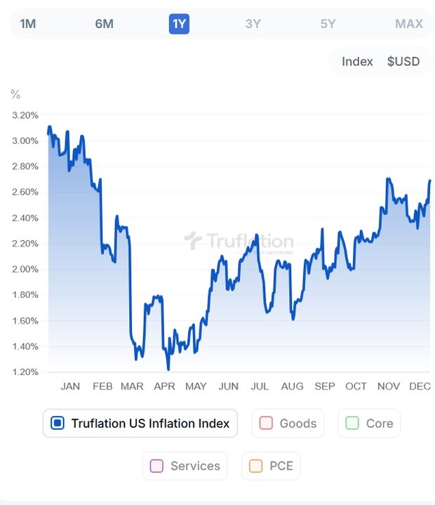 但選出哈塞特以後真的是利率政策就會一整年更加鴿派降更多次利率嗎?以下這張圖片說明了一切。故筆者最後還是風險警示,雖然看起來2026年的利率走勢應該是維持寬鬆,而且可能有降息更多碼數的機會,經濟看起來也還是穩健。但其實美國的通膨數據是持續在增溫的,雖然鮑威爾認為通膨是暫時的,但沒有人能保證更寬鬆的貨幣政策不會造成通膨預期走高,故投資人還是要保有彈性。