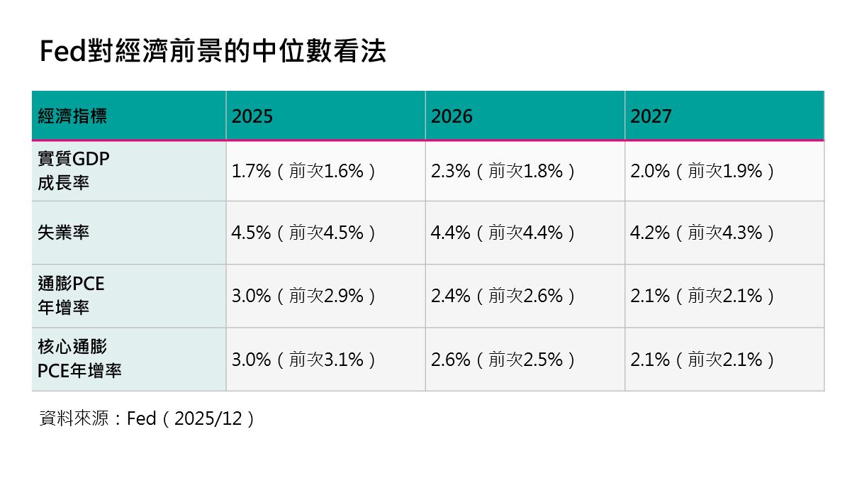 接著我們也回過頭來檢視12月的FOMC會議。在本次的FOMC會議中,Fed如市場預期,將聯邦基金利率下調一碼,讓區間調降至3.50%-3.75%,這是自今年9月啟動降息循環以來的第3次連續降息;而比較令市場意外的是,Fed還另外的重啟技術性購債,宣布每月將購買約400億美元的短期國庫券,儘管Fed強調這不是QE量化寬鬆,只是為了應對近期隔夜拆款利率的流動性緩解,但仍舊給市場打進一劑強心針。