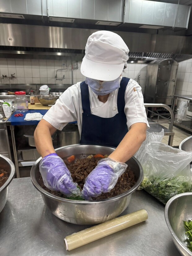 臺師大EMBA與惜食台灣行動協會的惜食廚房合作,為平溪國中慈輝生烹煮美味家常晚餐