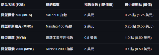 從規格來看,目前這幾項指數商品大概跳動1個Tick的輸贏落在0.5~5美元間,輸贏比國內的台指期的200元還要小,非常適合小資族。而保證金則大致落在1500~4000美元,進入門檻也不高。且最值得留意的是,海外期貨幾乎以24小時電子盤交易,台灣時間約為06:00(冬令07:00)至次日 05:00(冬令6:00),只要市況變化,投資人都可以隨時進場避險。微型合約雖降低了保證金門檻,但其槓桿屬性依然存在,適合追求精確風險控制(Precision Positioning)的投資人。