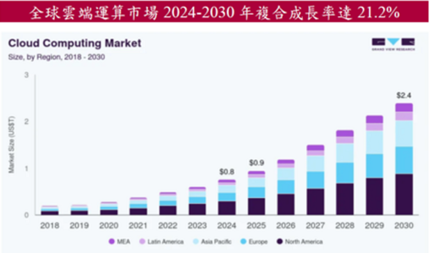 全球雲端運算市場2024~2030年複合成長率達21.2%