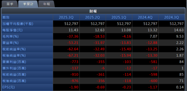 營運現狀:雖然2025年太陽能產業處於谷底,元晶獲利暫時承壓,2025年前3季每股稅後虧損1.9元。但隨著政府政策支持與外銷美、日市場的布局,營運有望在2026年中回溫。