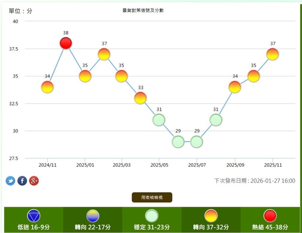 最新景氣燈號再度亮出黃紅燈,距離過熱紅燈僅一步之遙。資金由房轉股、M1B與M2雙升、AI浪潮推升預期,使景氣持續轉強。