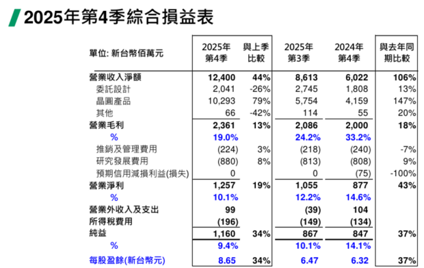 至於毛利率方面,創意的財務長廖俊杰表示,後續若NRE比重回升、出貨規模持續擴大,整體毛利率趨勢仍屬正向,不會再像去年第4季一樣低於2成。